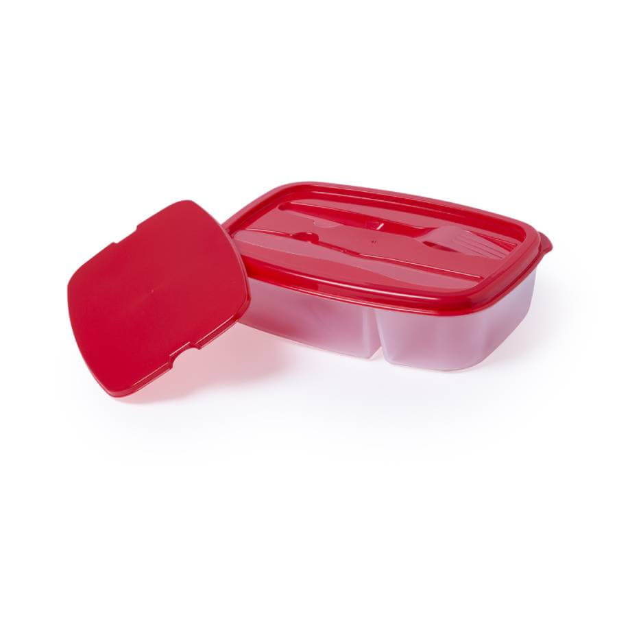 Термосумка "домик" с широким дном, застежкой на липе и прочной нейлоновой ручкой, из полиэстера 600D и изотермической внутренней отделкой из алюминияПрозрачное окошко для вкладывания бейджа на оборотной сторонеКонтейнер в цвет, для пищевых продуктов, не содержащий BPAВ дополнительном отделении крышки контейнера скрепятся нож и вилка из пластика в цвет крышки.Контейнер ёмкостью 1,6 л состоит из большого и маленького отделений для разных продуктов