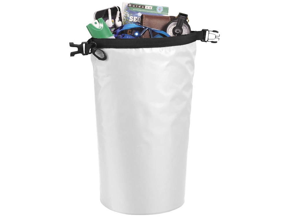 Походный 10-литровый водонепроницаемый мешок. Водонепроницаемая сумка отлично подходит для отдыха на открытом воздухе. Благодаря крышке с пластмассовой пряжкой ваши вещи не промокнут и будут в безопасности. Можно легко прикрепить к сумке или ремню. При скатывании и сгибании емкость содержимого составляет 10 литра. Полиэстер 190T.