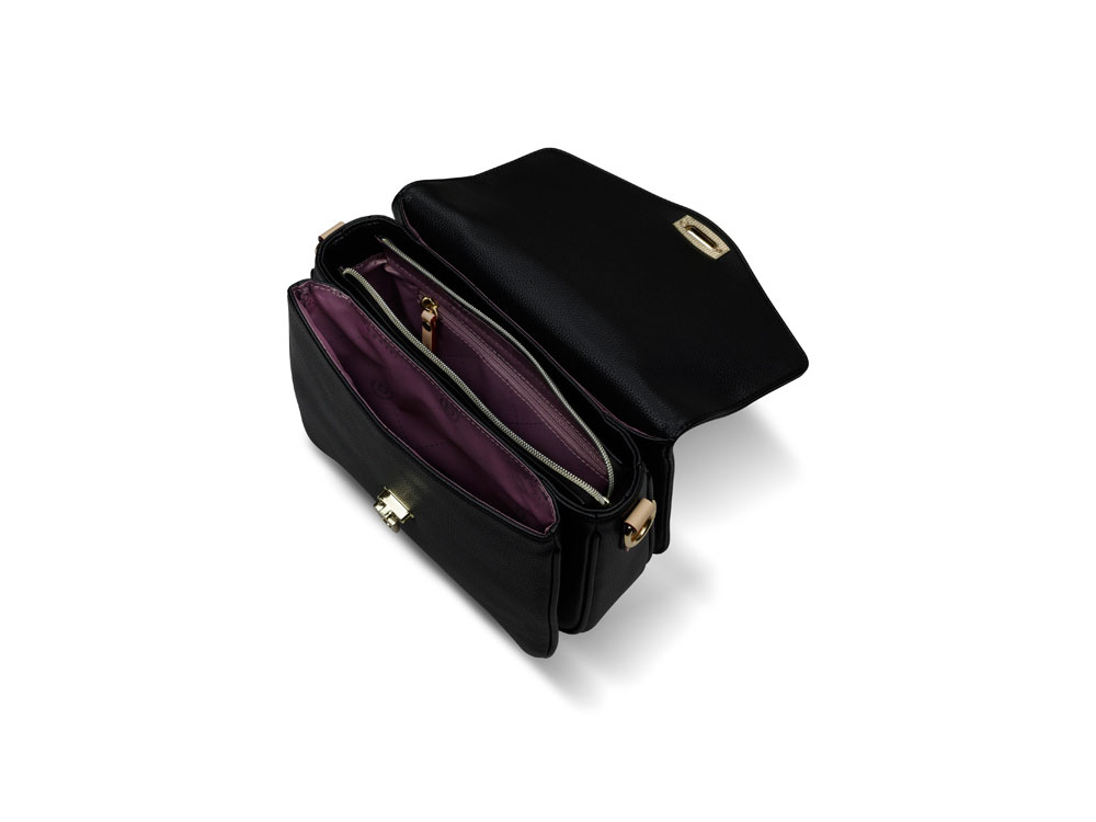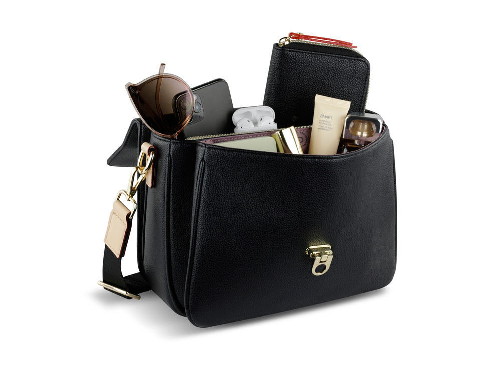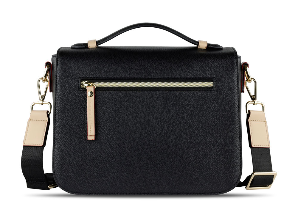 Внешняя организация: застёжка-клапан, задний карман на молнии, съёмный регулируемый ремень (до 130 см)