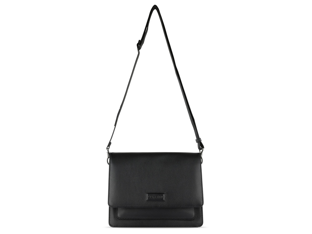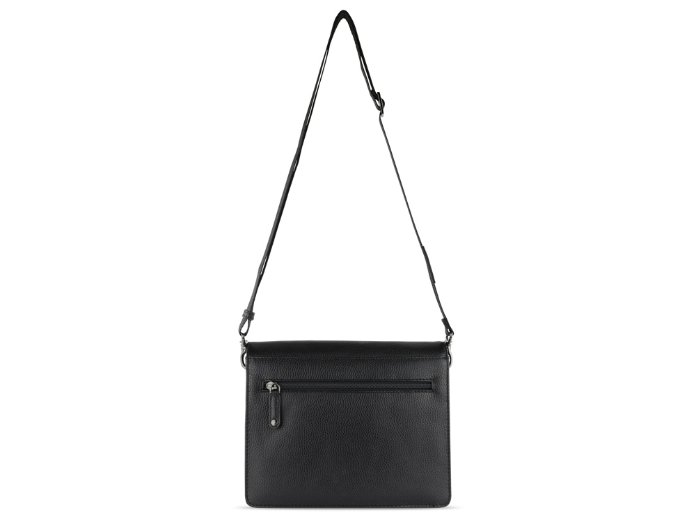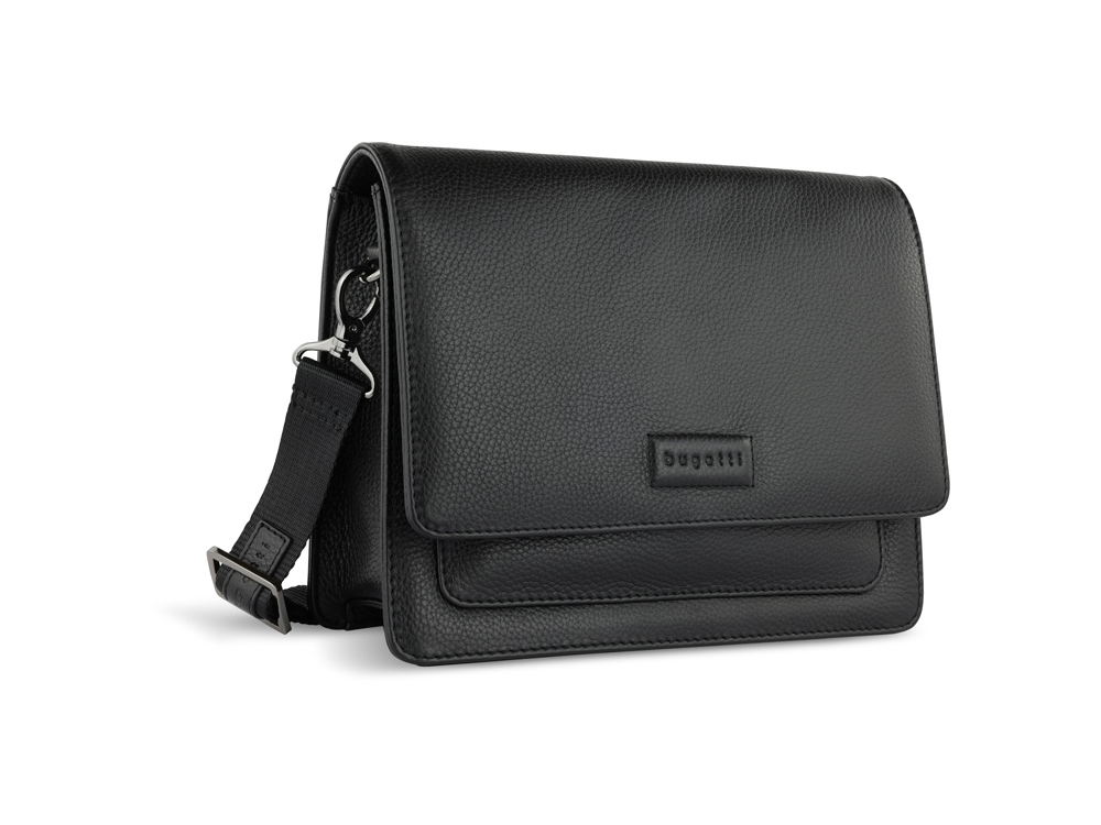Функциональная организация: основное отделение на магнитной кнопке с карманом на молнии и открытым карманом, передний открытый карман, задний карман на молнии, съемный регулируемый плечевой ремень (до 130 см).