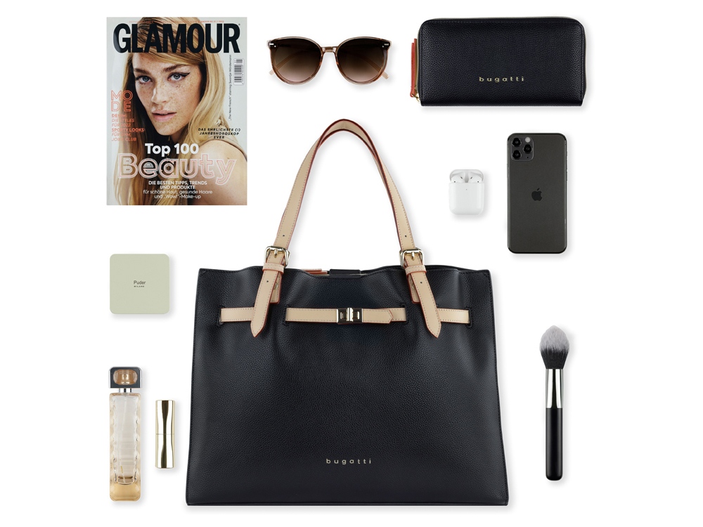 Внешняя организация: съёмный регулируемый плечевой ремень (до 130 см), ножки на дне