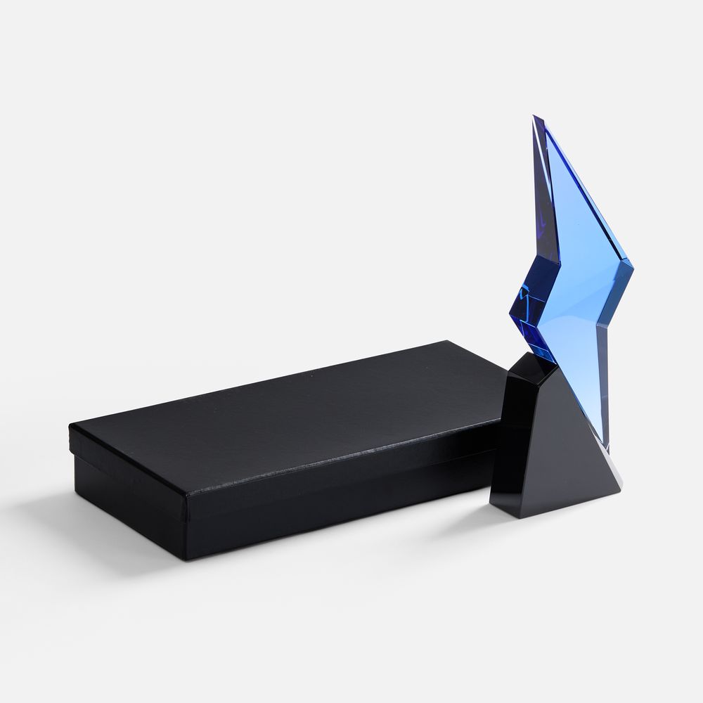 Стела Flash Forward — символ прорыва, устремленного в будущее. Динамичная форма молнии воплощает энергию инноваций и скорость трансформаций. Эта награда — визуальный манифест для тех, кто опережает время.