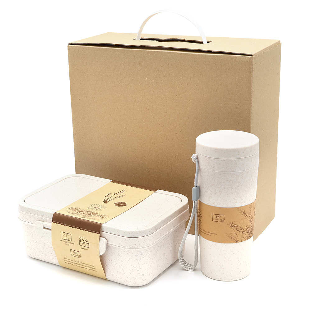 Подарочный набор Summerfield включает изделия из пшеничного волокна: ланчбокс и термостакан. Ланчбокс – удобный и проверенный временем помощник, для хранения и переноса вашего обеда. Термостакан обладает двойной стенкой, чтобы не обжечь руки горячим напитком, или наоборот – сохранить надолго прохладу в летнюю жару.