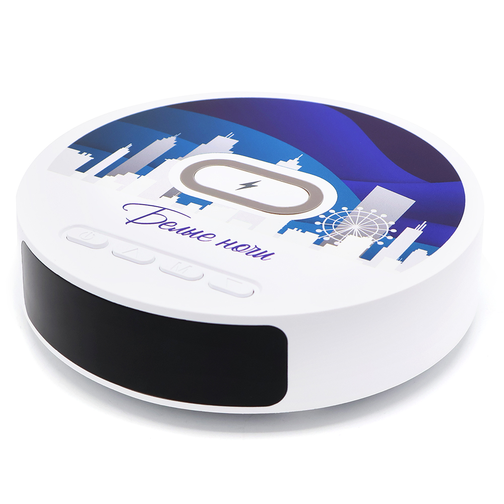 1. Часы с беспроводной зарядкой Dovel 3в1, белые (артикул 7100.01) - 1 шт.