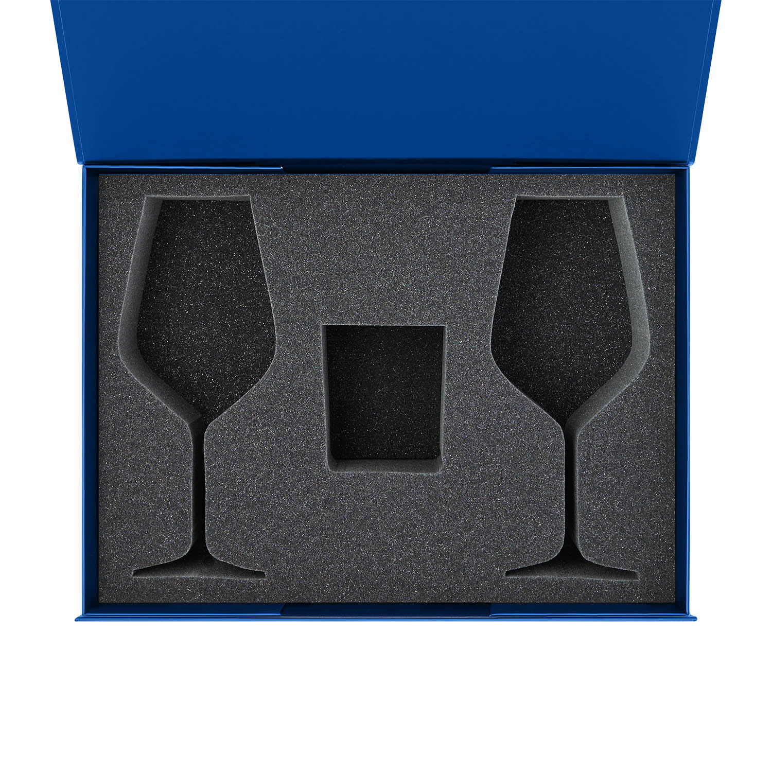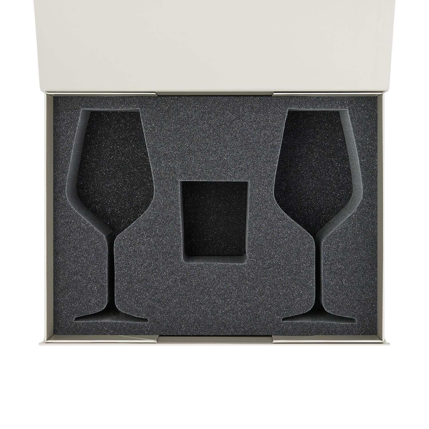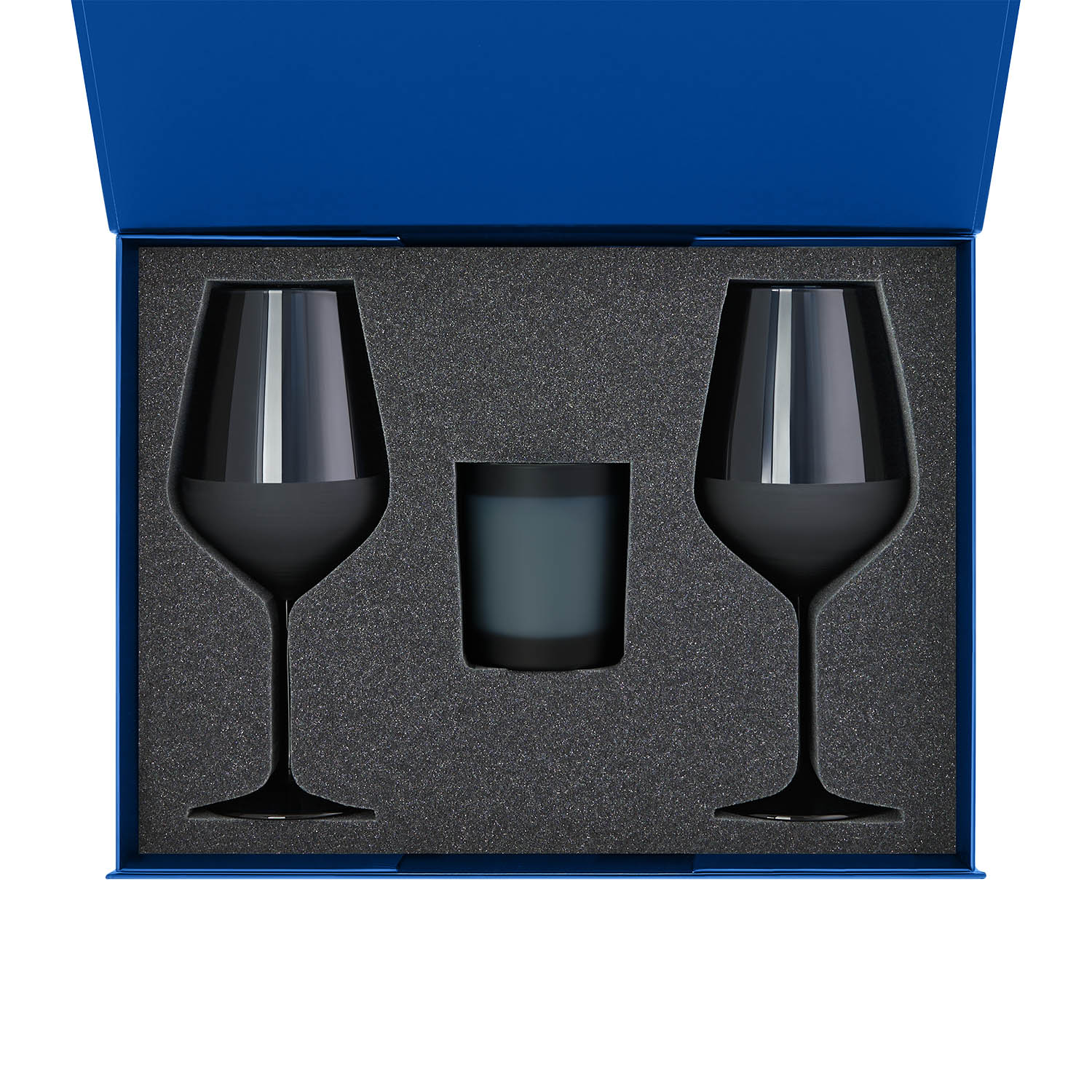 Идеальное решение для надежной и стильной упаковки двух бокалов для вина и свечи.