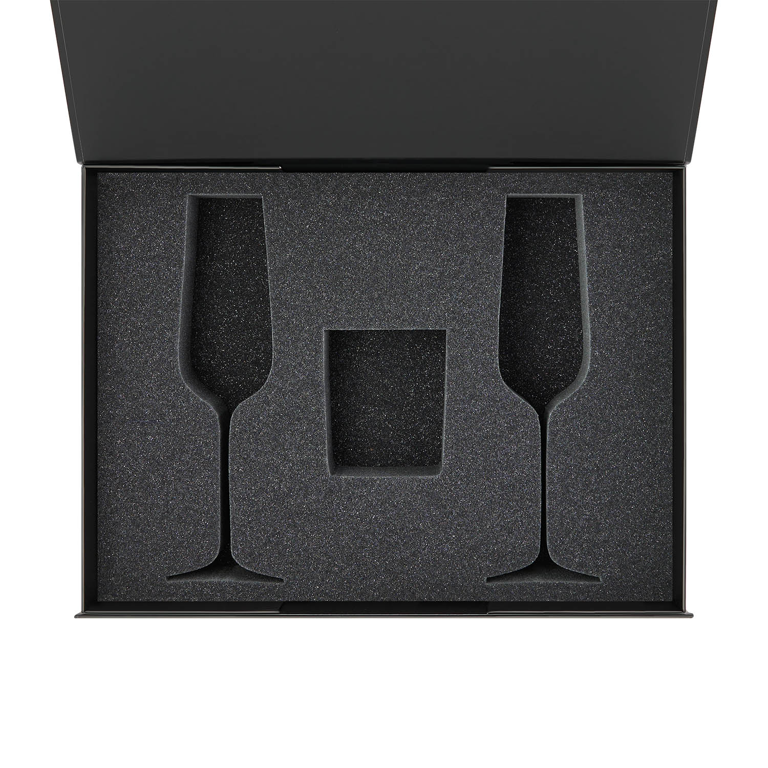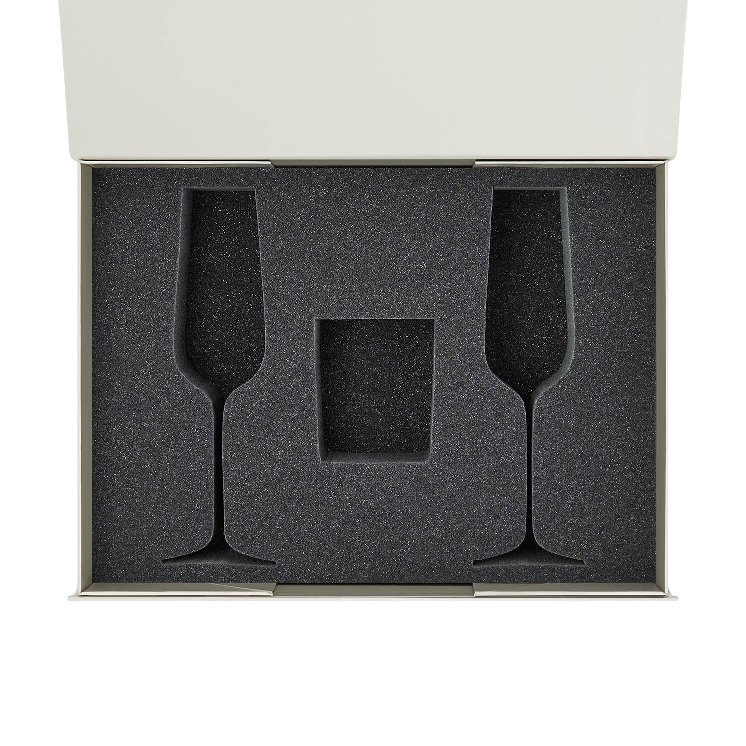 Идеальное решение для надежной и стильной упаковки двух бокалов для шампанского и свечи.