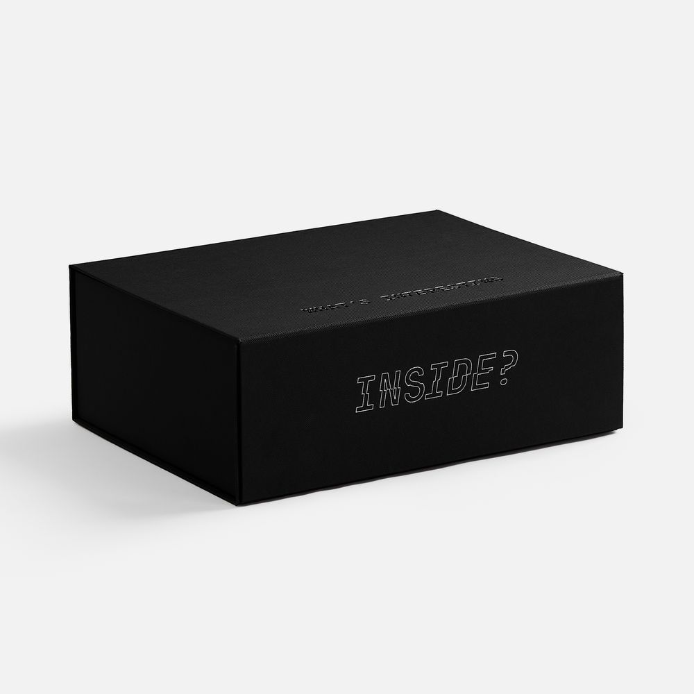 Коробка из переплетного картона, кашированного тисненой тонированной в массе бумагой, с крышкой на магните.