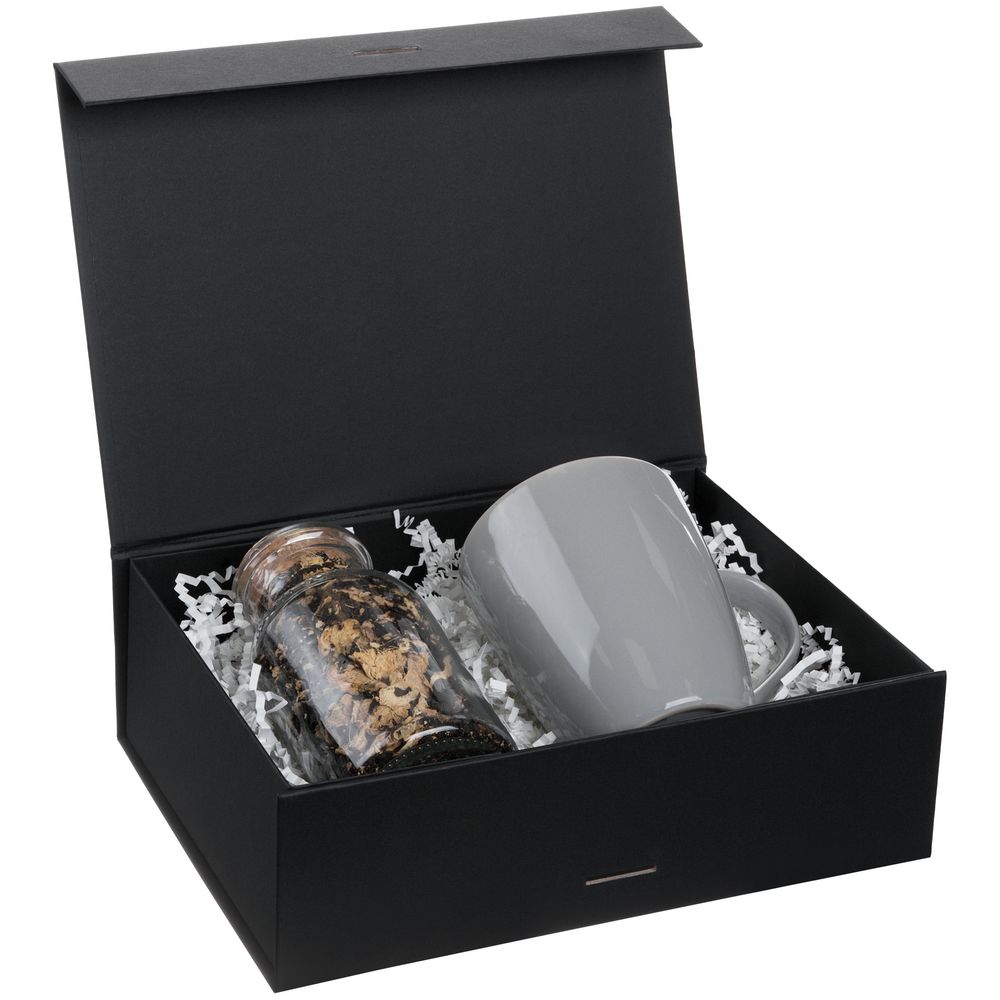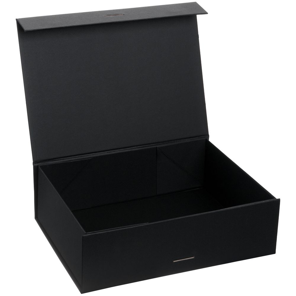 Коробка из переплетного картона с лайнером, ламинированым полуглянцевой текстурной пленкой и устойчивого к царапинам. Крышка на двух магнитах дополнительно фиксируется лентой.Толщина картона 2 мм.