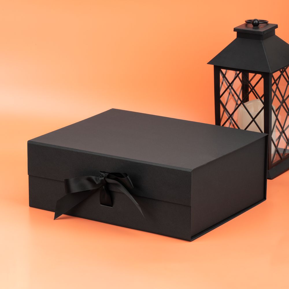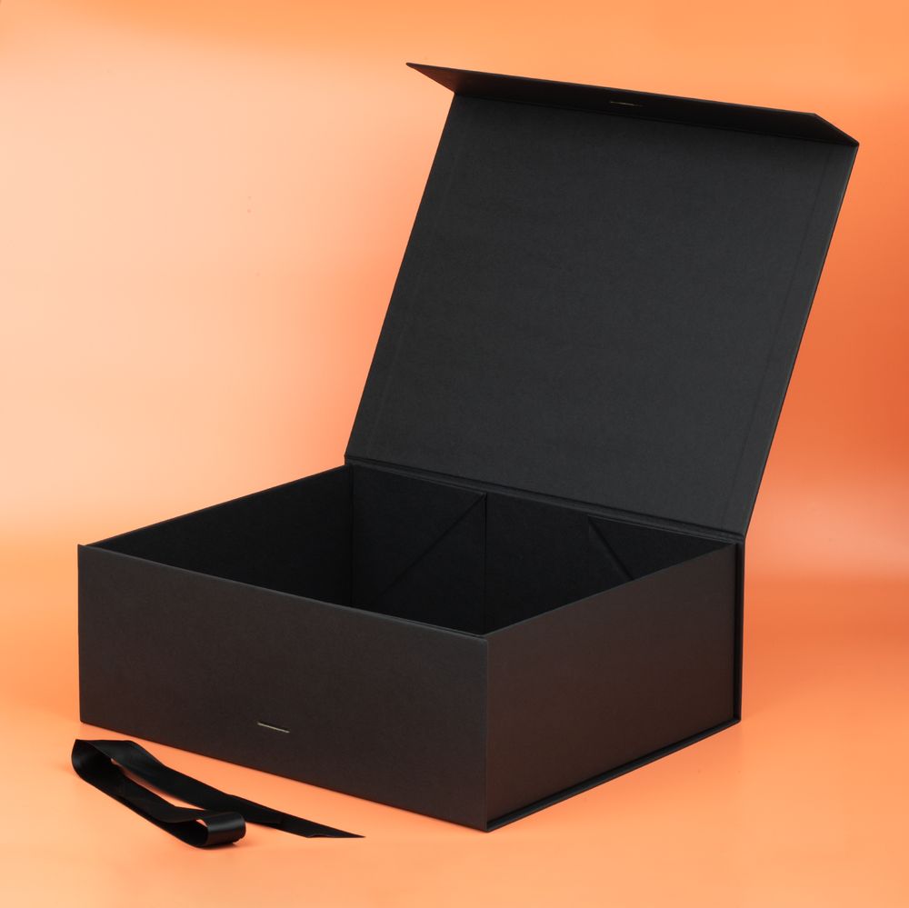 Коробка из переплетного картона с лайнером, ламинированым полуглянцевой текстурной пленкой и устойчивого к царапинам. Крышка на двух магнитах дополнительно фиксируется лентой.Толщина картона 2 мм.