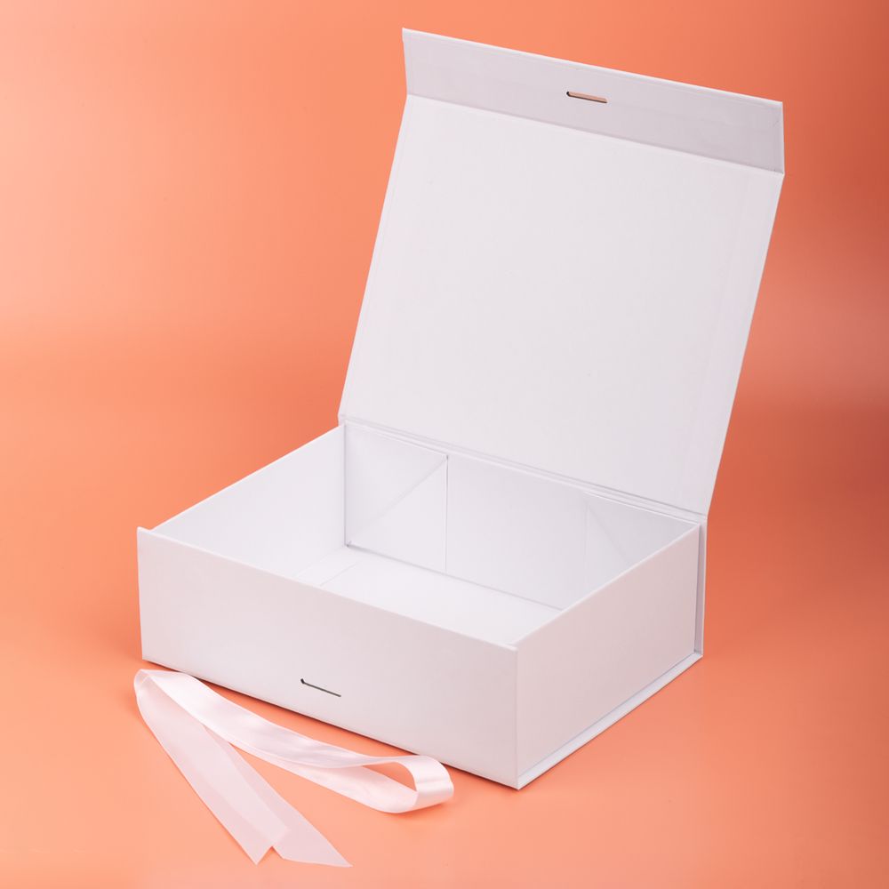Коробка из переплетного картона с лайнером, ламинированым полуглянцевой текстурной пленкой и устойчивого к царапинам. Крышка на двух магнитах дополнительно фиксируется репсовой лентой.Толщина картона 2 мм.