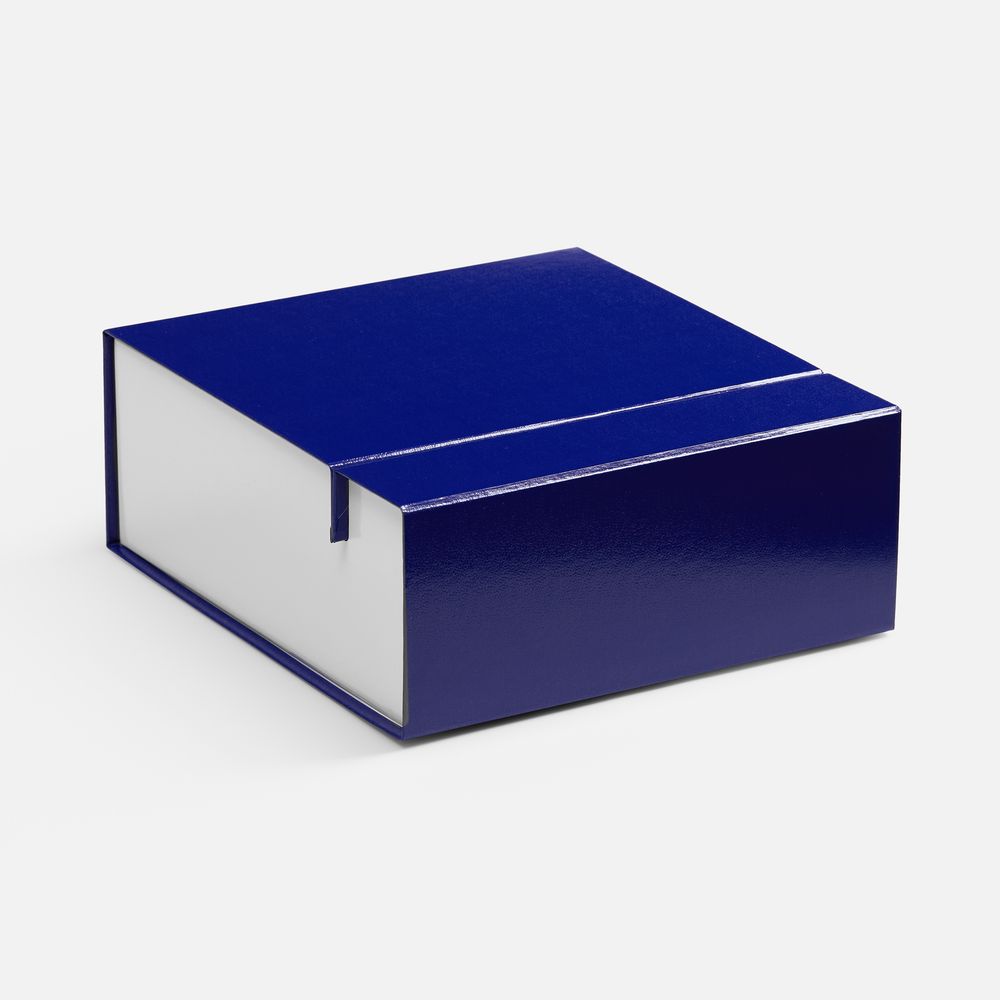 Плотная коробка из переплетного картона толщиной 2 мм с практичной конструкцией на двух створках. Складная система с уже нанесенным двусторонним скотчем позволяет быстро собрать коробку без дополнительных инструментов. Лайнер с полуглянцевым ламинированием устойчив к повреждениям и надолго сохраняет безупречный вид.