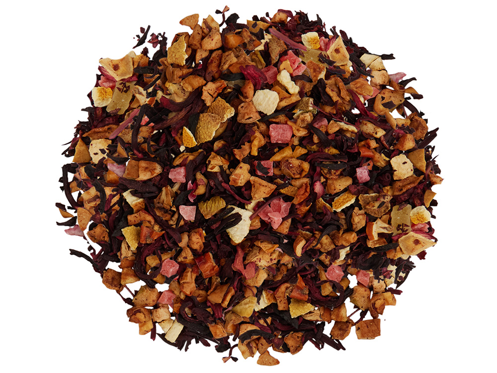 Яркий фруктовый чай с насыщенными вишнёвыми нотами и лёгкой пряной глубиной. Этот чай раскрывается сочной гаммой вкусов: яркая кислинка суданской розы играет в дуэте со сладостью яблок и ананаса, а солнечная цедра апельсина добавляет свежий цитрусовый акцент. Главная нота — насыщенная вишня, которую мягко обрамляют сливочные оттенки, превращая напиток в настоящий фруктовый десерт в чашке. Настой получается рубиновым, аромат — густым и праздничным, вкус — насыщенным и гармоничным.
