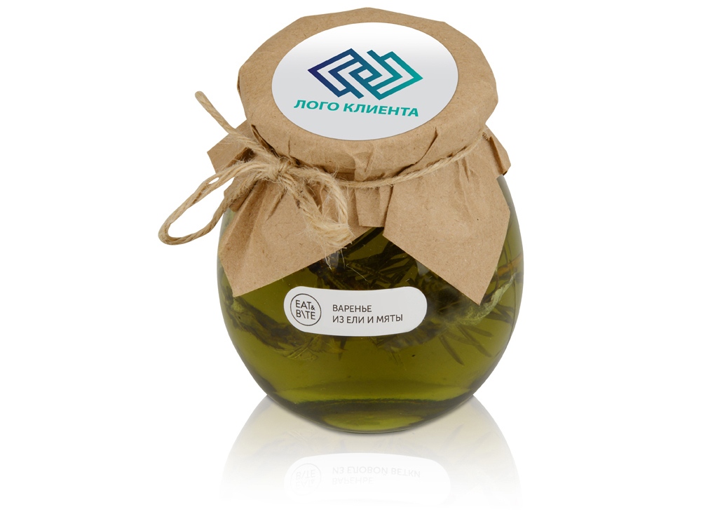 Банка варенья обернута крафт-бумагой, на которую возможно сделать нанесение корпоративного логотипа.
