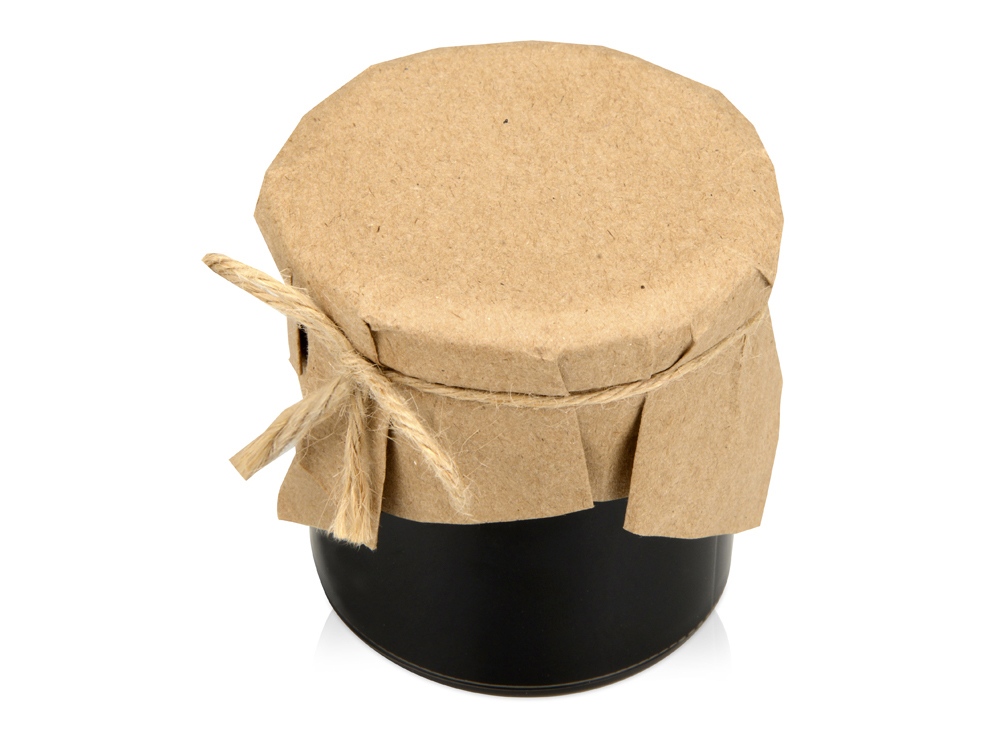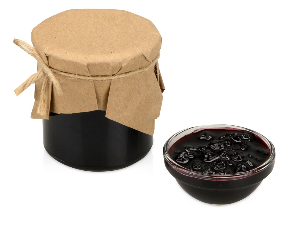 Банка варенья обернута крафт-бумагой, на которую возможно сделать нанесение корпоративного логотипа.