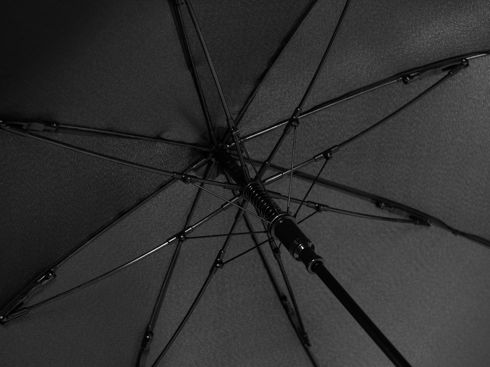 Прочный зонт-трость большого диаметра может укрыть от дождя двух человек одновременно. А с гибким спицам из стекловолокна не страшные порывы ветра - зонт выстоит!