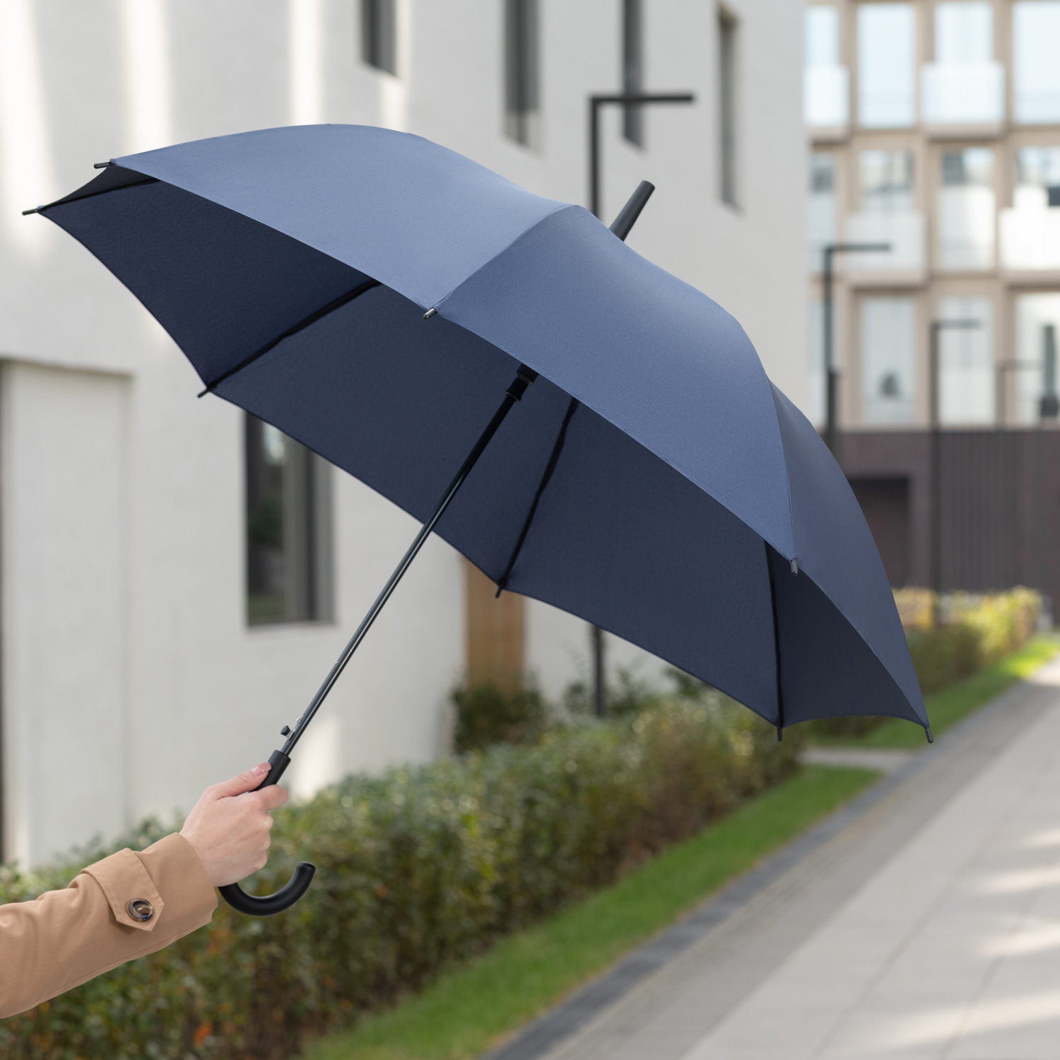 Зонт оснащен системой антишторм, что позволяет спицам не ломаться даже при сильных порах ветра.