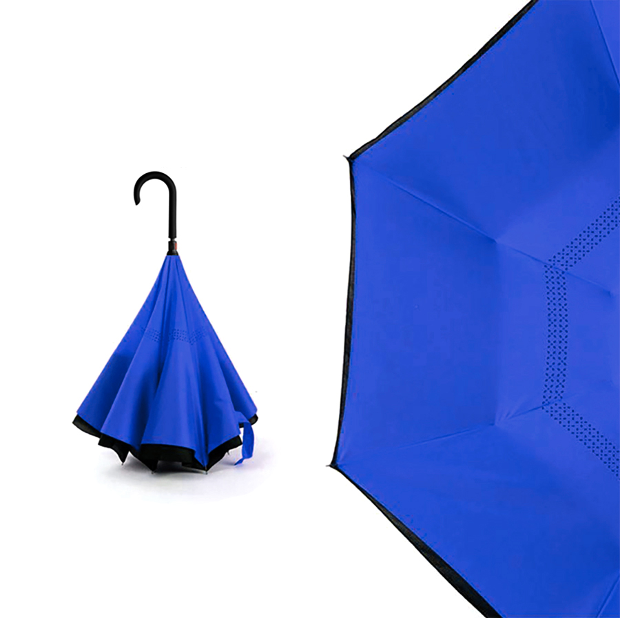 Зонт-трость механический обратного сложения Chaplin выполнен из двухслойной двухцветной ткани эпонж.