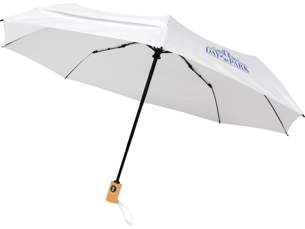 Автоматически открывающийся/закрывающийся зонт Bo из переработанного ПЭТ-пластика. Куполом из эпонж полиэстера и переработанного ПЭТ-пластика. Прочный металлический стержень, высококачественная рама со спицами из стекловолокна, обеспечивающая максимальную гибкость в ветреную погоду. Поставляется с чехлом и может легко поместиться в сумку или рюкзак для удобного ношения.