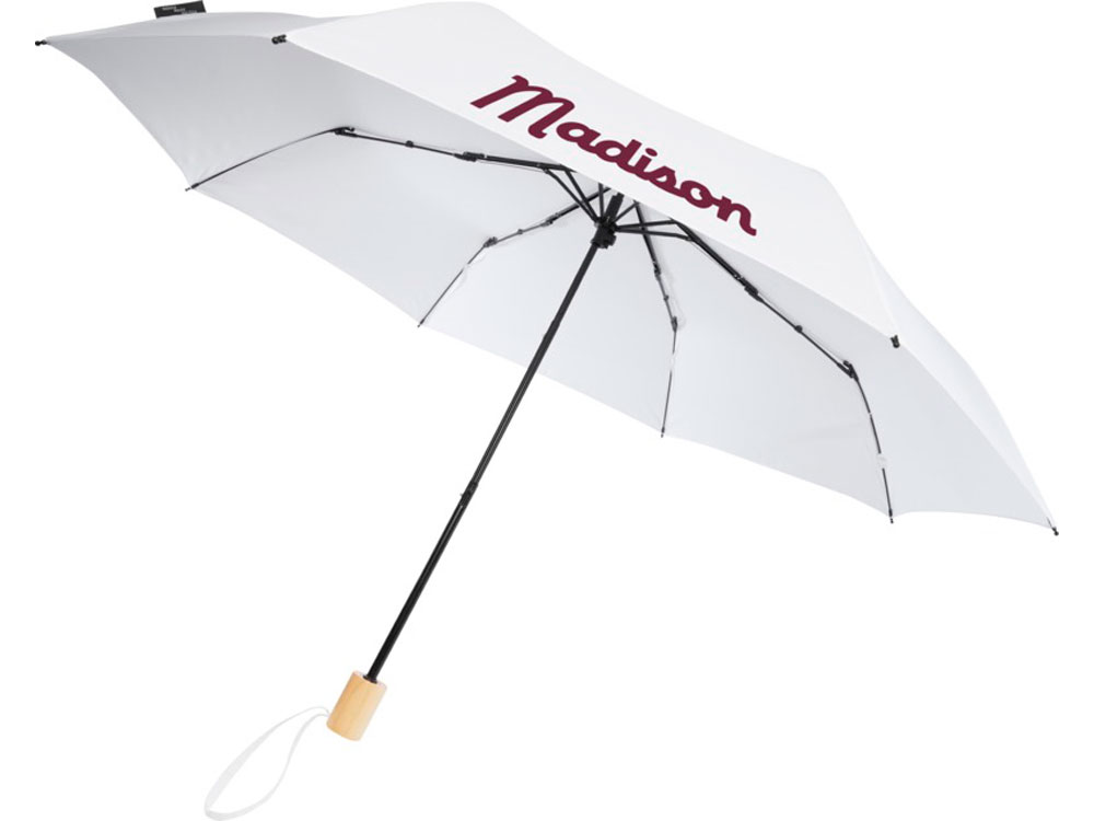 Ручной складной зонт с куполом из эпонж полиэстера и переработанного ПЭТ-пластика. Прочный металлический стержень, высококачественная рама со спицами из стекловолокна обеспечивают максимальную гибкость в ветреную погоду. Поставляется с чехлом и может легко поместиться в сумку или рюкзак для удобного ношения. Сочетание деревянной ручки и купола из эпонж полиэстера и переработанного ПЭТ-пластика обеспечивает надежность зонта. Доступен в различных модных цветах.