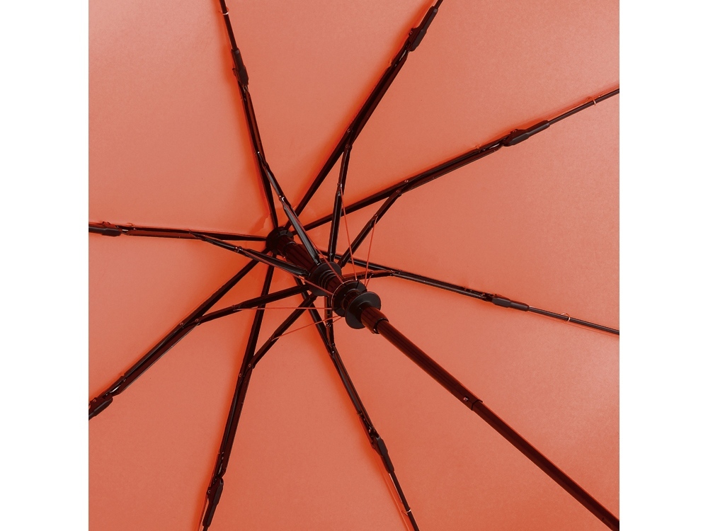 Зонт быстро открывается нажатием кнопки на ручке. Система защиты от ветра сохранит зонт в любую погоду. По краю купола нанесена светоотражающая отделка для безопасности в темное время суток.