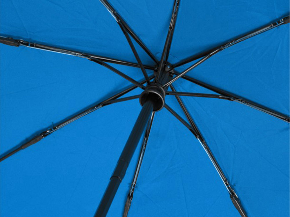 Автоматически открывающийся и закрывающийся зонт с куполом из эпонж полиэстера и переработанного ПЭТ-пластика. Прочный металлический стержень, высококачественная рама со спицами из стекловолокна, обеспечивающая максимальную гибкость в ветреную погоду. Поставляется с чехлом и может легко поместиться в сумку или рюкзак для удобного ношения.