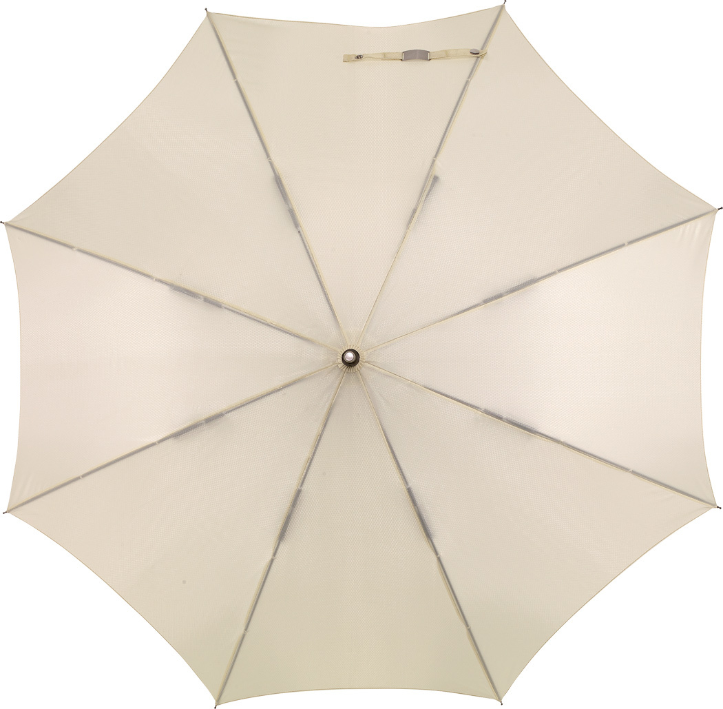 Автоматический зонт JUBILEE алюминиевый стержень, шины из стекловолокна, металлические наконечники подходящего цвета, закругленная ручка с резиновым покрытием, купол из полиэфирной ткани с чехлом с сотовой фактурой, стягивающий ремень с застежкой на кнопку и металлической пластиной для логотипа.