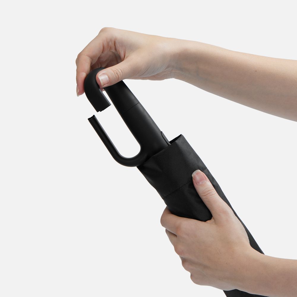 За ручку-карабин удобно подвесить зонт на рюкзак или сумку, покрытие от ультрафиолета защитит в самый солнечный день, а усиленные тройные спицы из стеклопластика выдержат коварные порывы ветра.